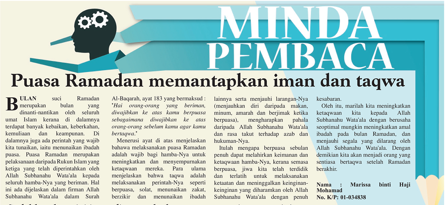 | Baca: Minda Pembaca Puasa Ramadan Memantapkan Iman Dan Taqwa |